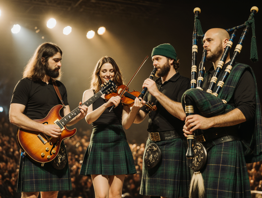 Une expérience musicale complète avec guitare, batterie, basse, clavier, saxophone, violon, accordéon…